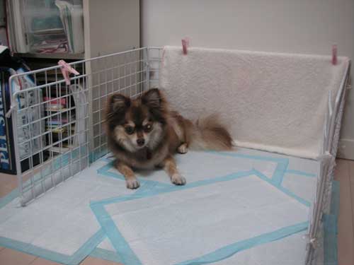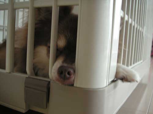 足元をチョロチョロして危ないので、お掃除の時はケージに入ってもらいます。