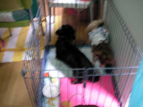 同様にボビもりこちゃんのケージをクンクンします。(入る事はしません)